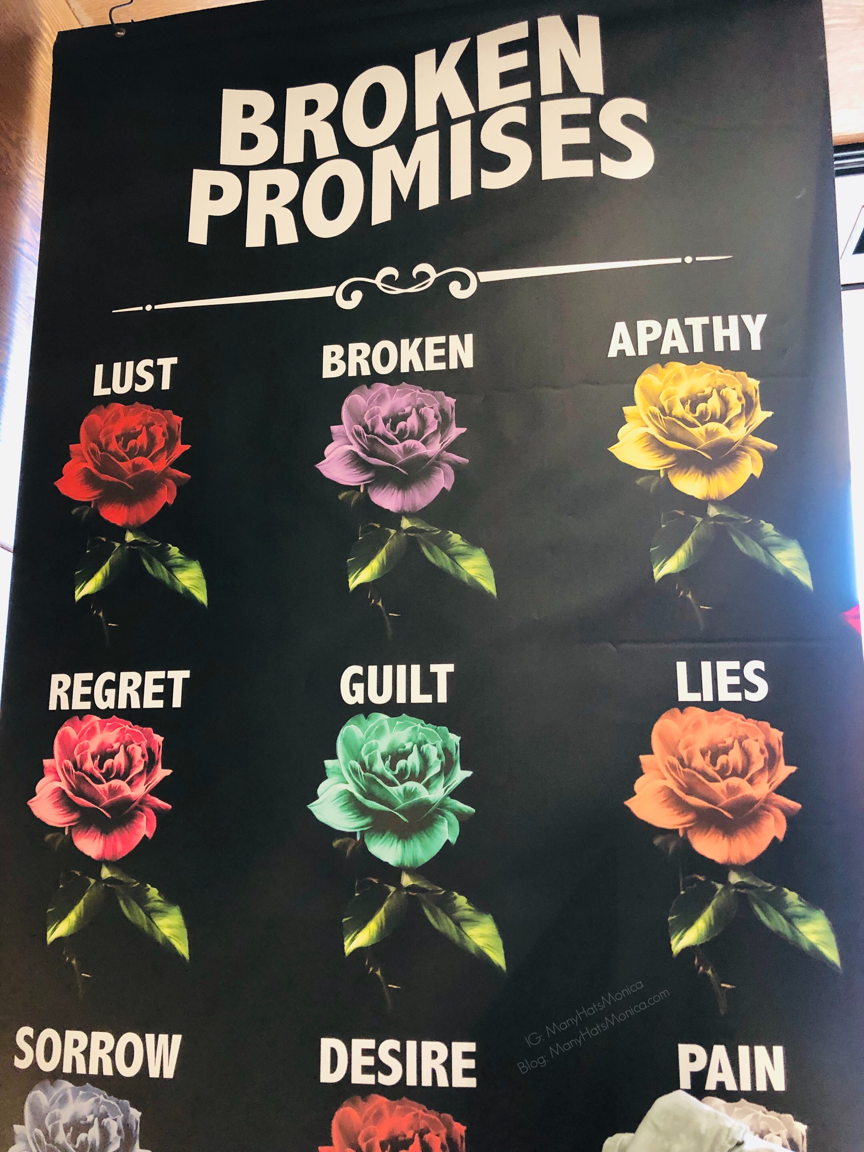 Recientemente fuimos al centro comercial para compras escolares. Mientras caminaba vi esta marca llamada Promesas Rotas.
